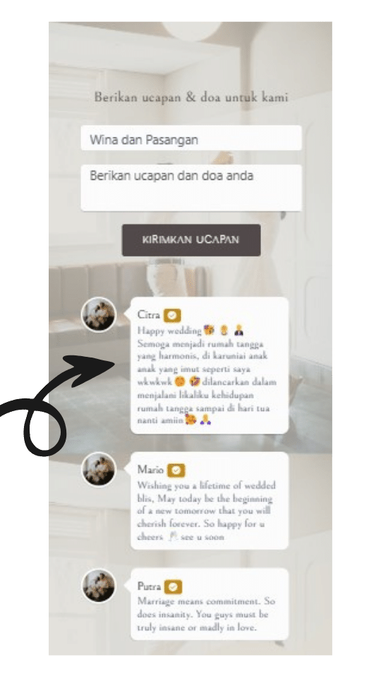 Jika ucapan dari tamu bersifat private akan digabungkan dengan data RSVP.